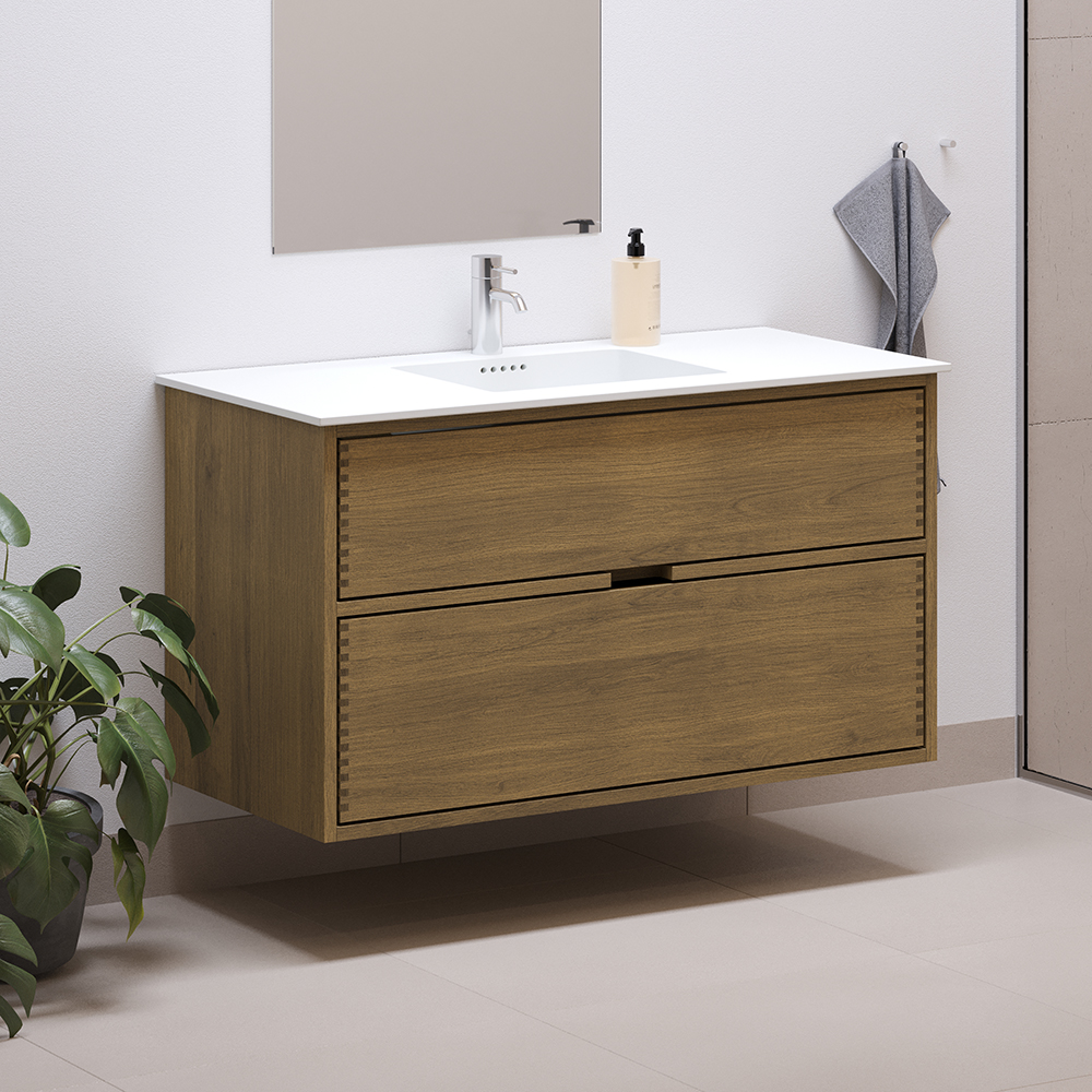 100 cm Mørkoljert Just Wood baderomsmøbel med 2 skuffer
