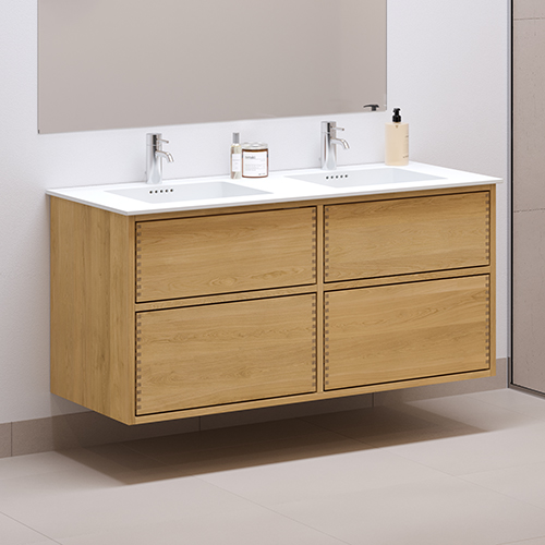 120 cm Lysoljert Just Wood Push baderomsmøbel med 4 skuffer - Dobbel utsparing