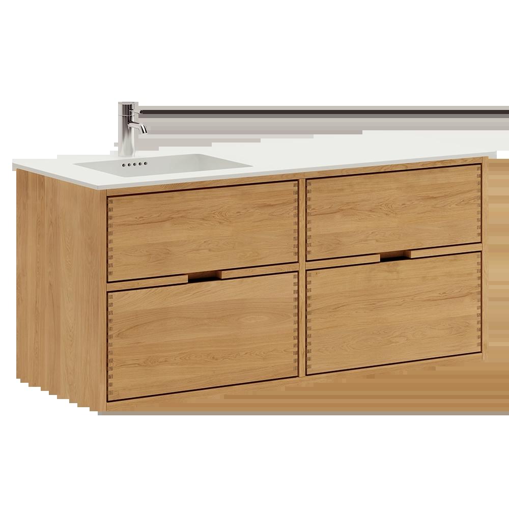 120 cm Lysoljert Just Wood baderomsmøbel med 4 skuffer - Venstre utsparing