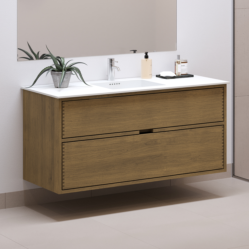 120 cm Mørkoljert Just Wood baderomsmøbel med 2 skuffer