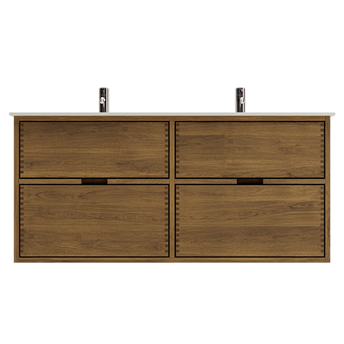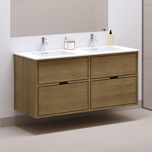 120 cm Mørkoljert Just Wood baderomsmøbel med 4 skuffer - Dobbel utsparing