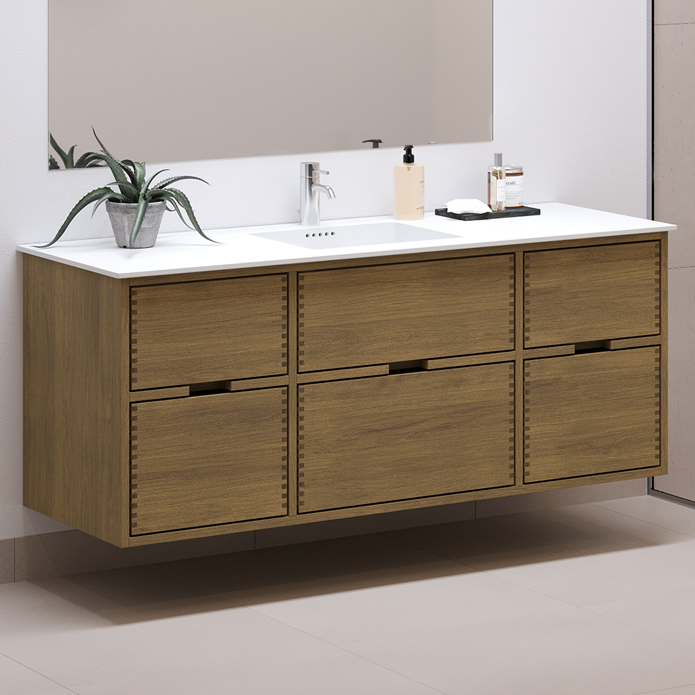 140 cm Mørkoljert Just Wood baderomsmøbel med 6 skuffer