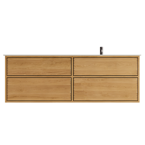 Et unikt snekkerprodukt laget av de beste materialene. Solide, oljete og fingertappende treskuffer i eik. Alle skuffer med fullt uttrekk og soft close. Sterk 8 mm. tykk understell og ekstra dype skuffer som utnytter plassen i skapet optimalt. Alt er laget for å passe perfekt sammen.