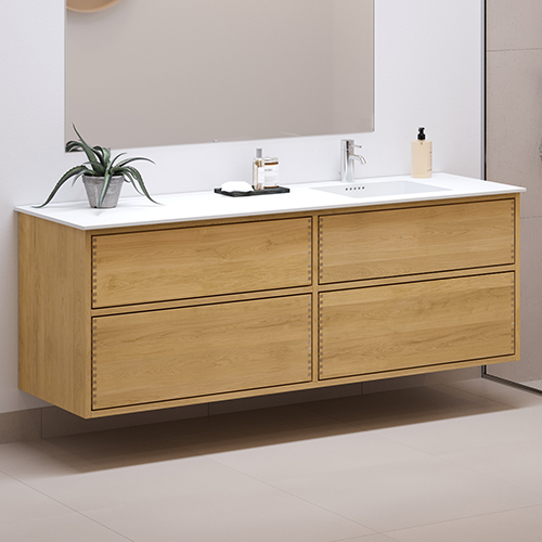 160 cm Lysoljert Just Wood Push baderomsmøbel med 4 skuffer - Høyre utsparing