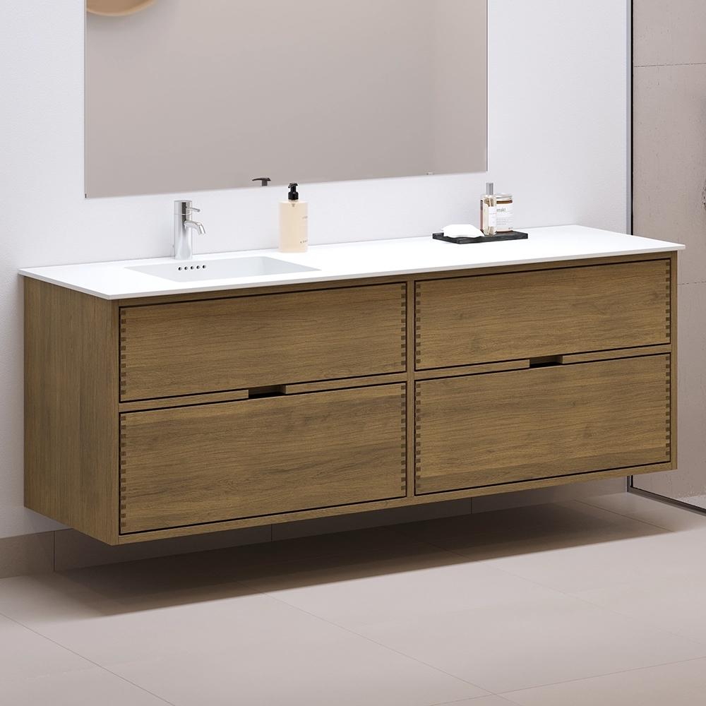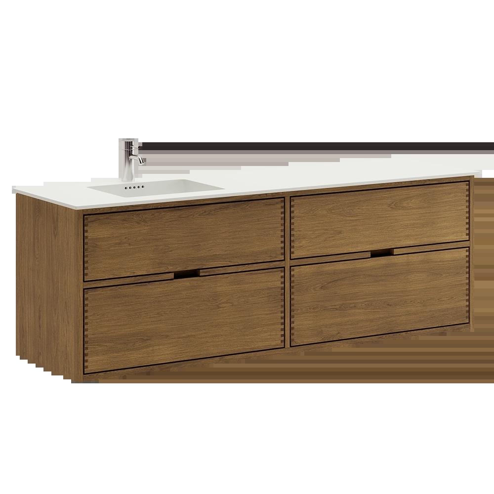 160 cm Mørkoljert Just Wood baderomsmøbel med 4 skuffer - Venstre utsparing