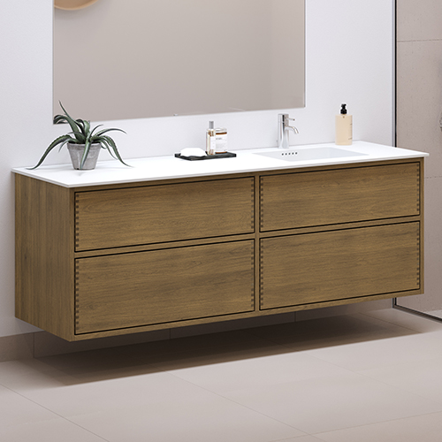 160 cm Mørkoljert Just Wood Push baderomsmøbel med 4 skuffer - Høyre utsparing
