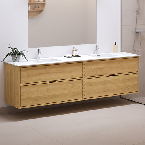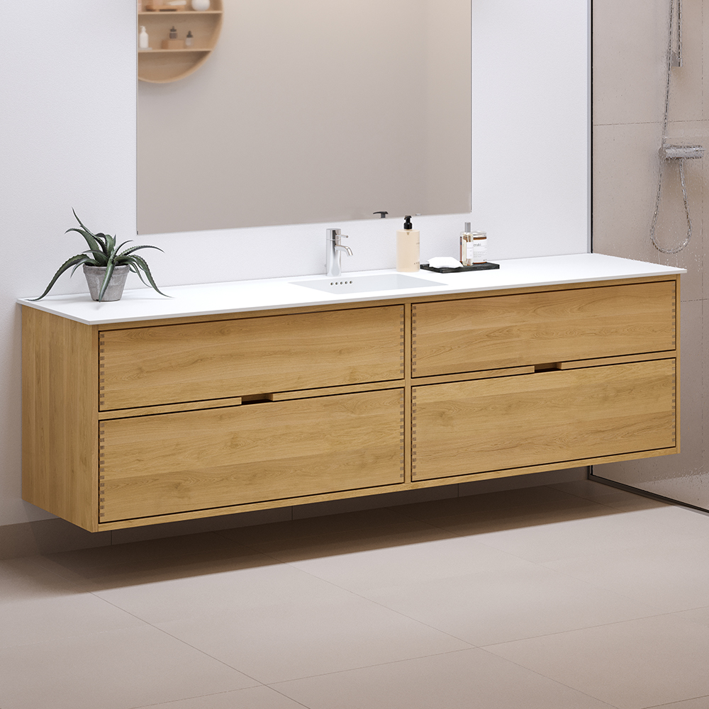 200 cm Lysoljert Just Wood baderomsmøbel med 4 skuffer - Dobbel utsparing