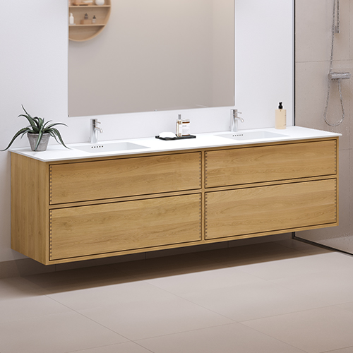 200 cm Lysoljert Just Wood Push baderomsmøbel med 4 skuffer - Dobbel utsparing
