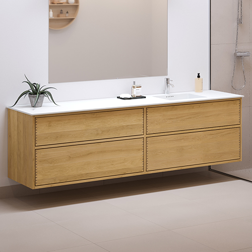 200 cm Lysoljert Just Wood Push baderomsmøbel med 4 skuffer - Høyre utsparing