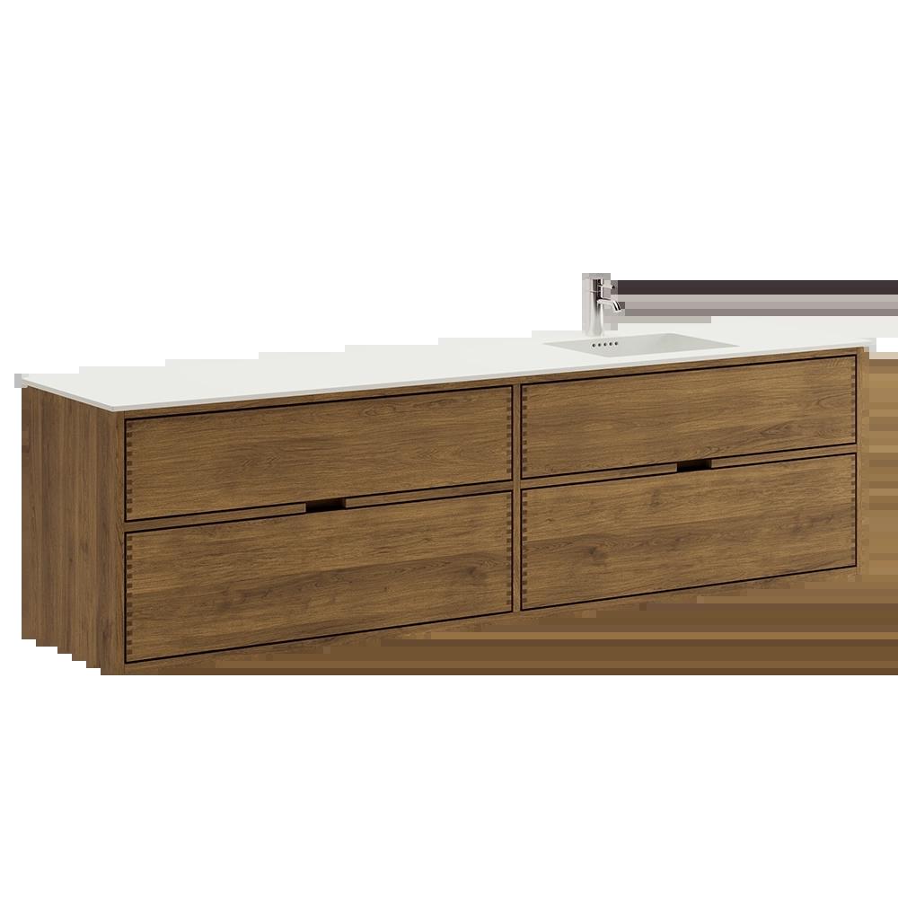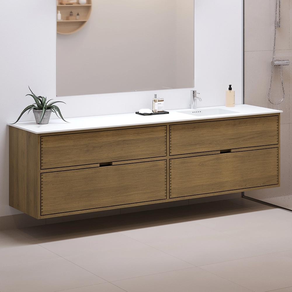 200 cm Mørkoljert Just Wood baderomsmøbel med 4 skuffer - Høyre utsparing