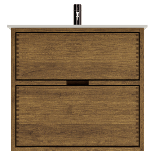 Just Wood Original Dark Oiled Badskabe, unikt snekkerprodukt laget av de beste materialene. Massive, mørkoljede og fingertappende treskuffer i eik. Alle skuffer med fullt uttrekk og soft close. Sterk 8 mm. tykk understell og ekstra dype skuffer som utnytter plassen i skapet optimalt. Alt er laget for å passe perfekt sammen.