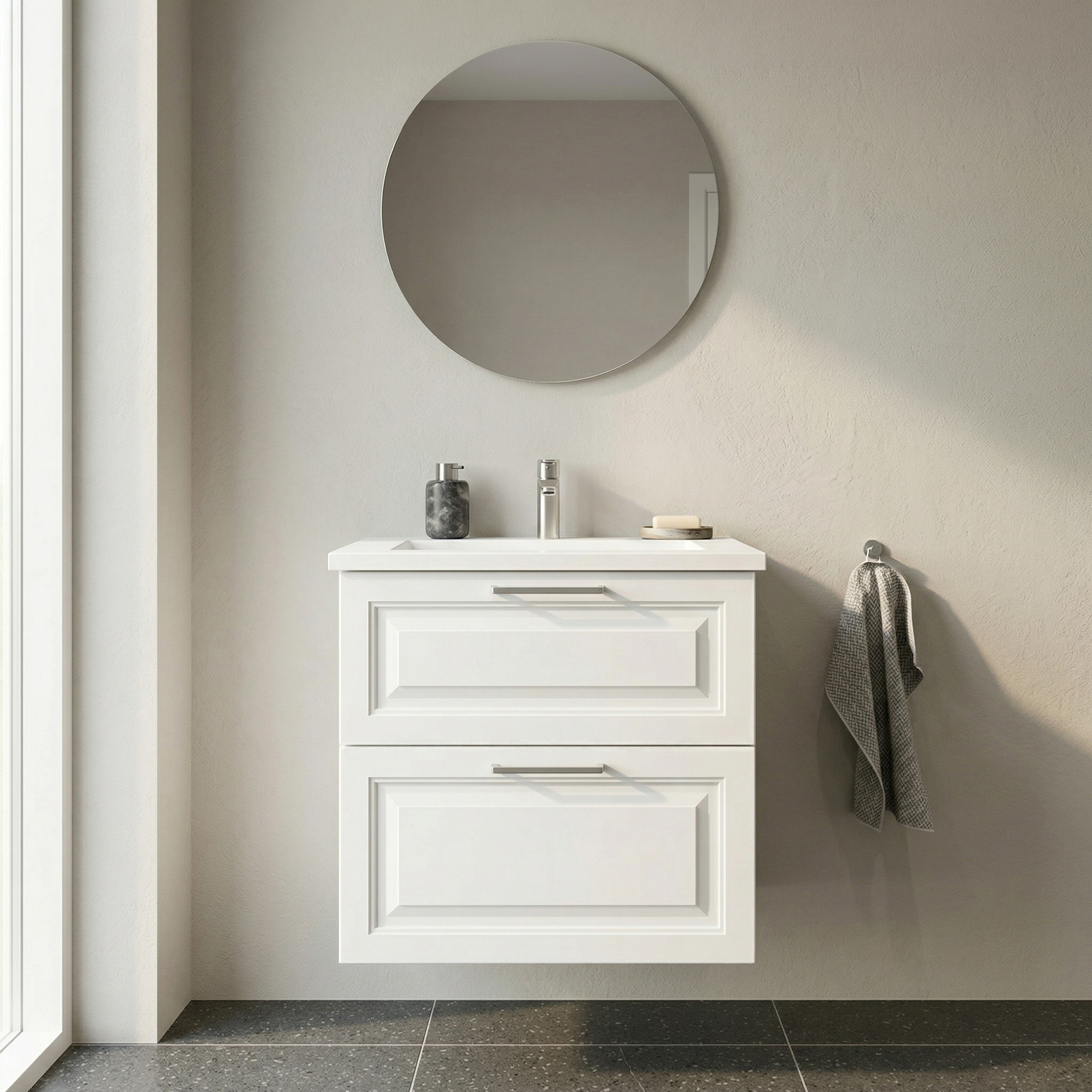 Leveres umontert og uten blandebatteri, bunnventil, speil og lys.
