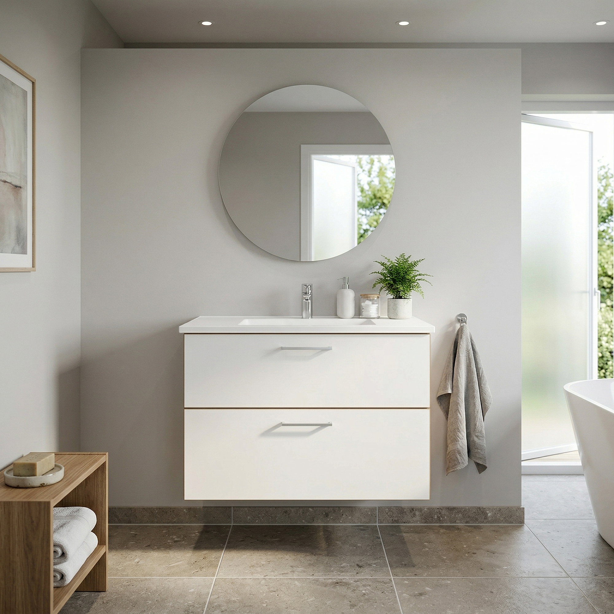 BADESETTT 82 CM Hvit Marmor servant