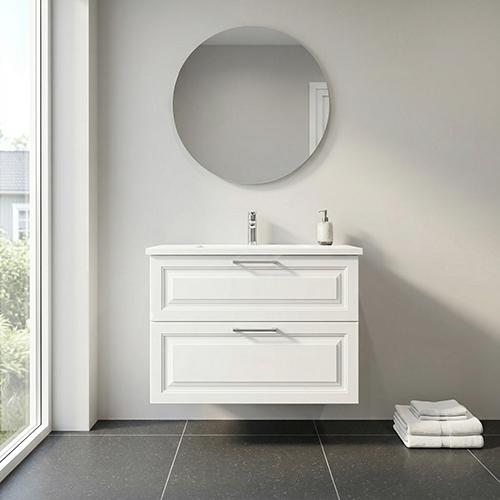 Leveres umontert og uten blandebatteri, bunnventil, speil og lys.
