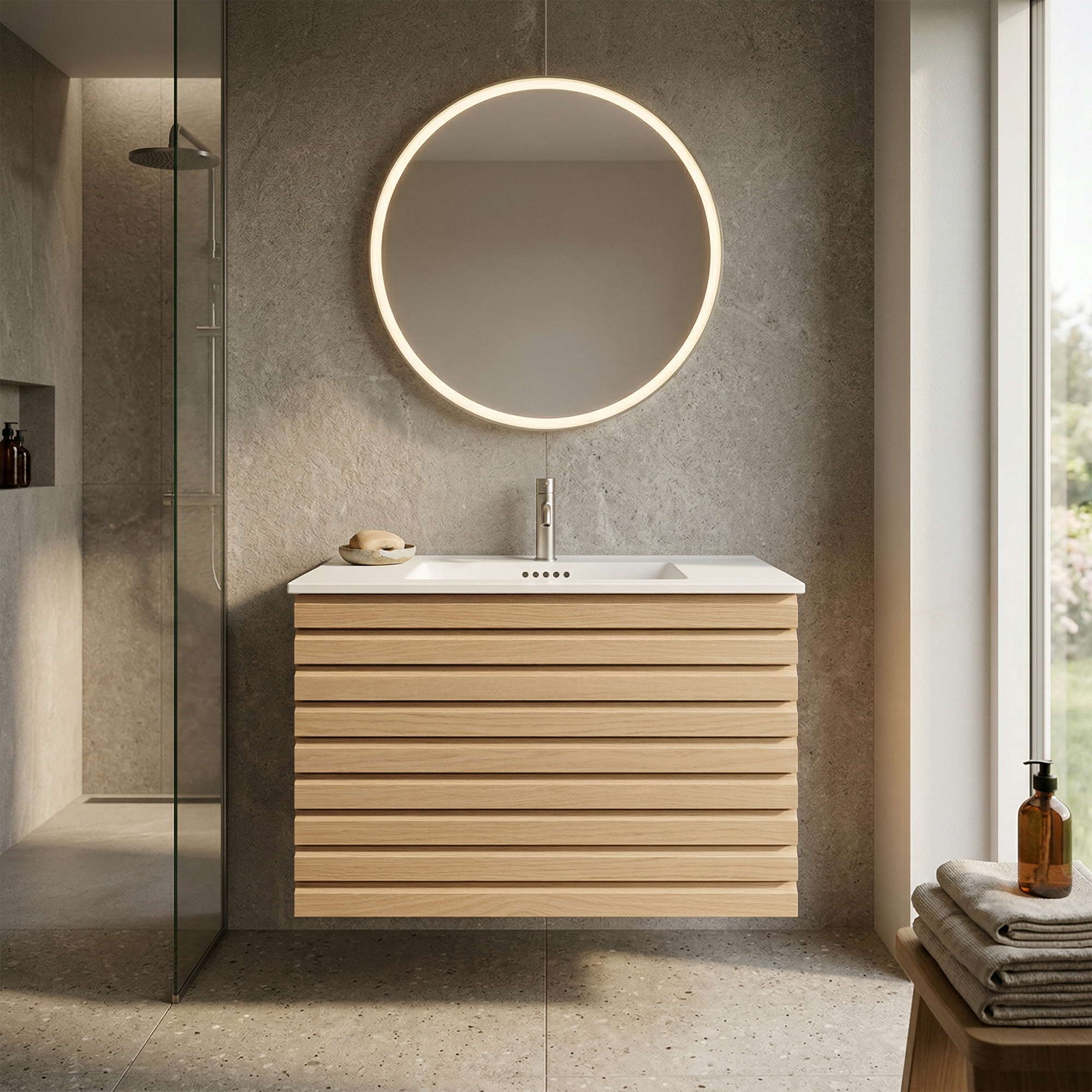 Badsæt 80 cm med 2 skuffer - Washington Eg Natur.