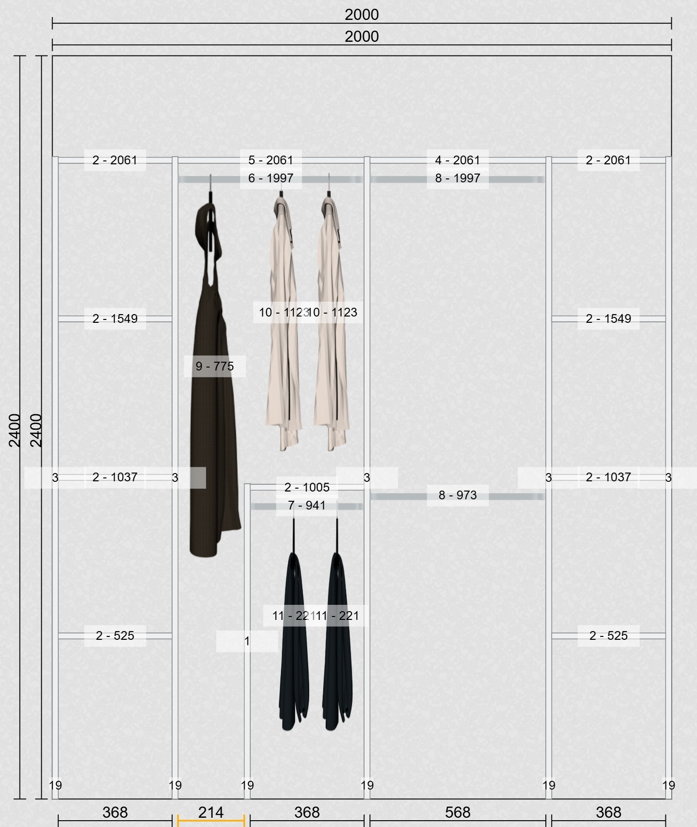 Celebert Inventar fra bredde 200 til 220 cm passer til 2 skydedøre
