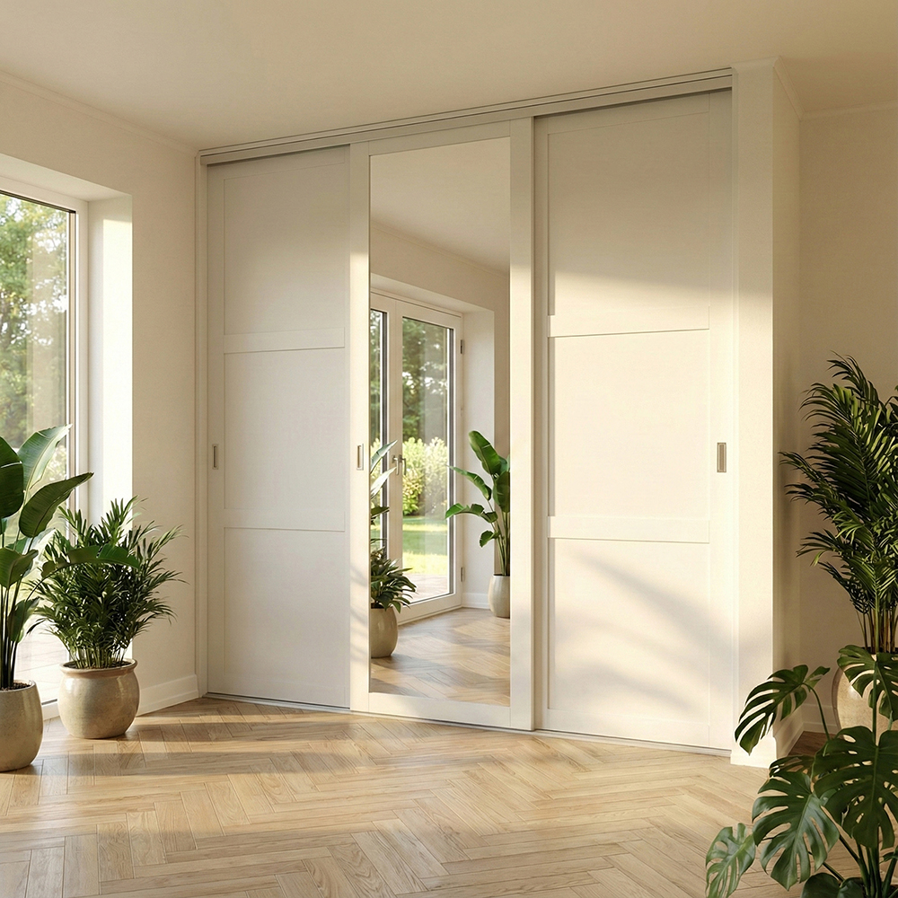 2713 Du er her: Hjem »Skyvedører / Garderobeskap»Skyvedører på mål»Contoura® skydelåger»Contoura® Almue Folie skyvedør Mogensen Contoura Almue Folie skyvedører på mål for garderober med 3 dører - Total bredde 144 til 192 cm. Contoura Almue Folie Skyvedører på på mål 3 skyvedører fra bredde 144 - 192cm. Prisen inkluderer skinne og brakettboks. Hvit massiv MDF-platedør belagt med folie med dekorativ utskjæring. Max. høyde er 245 cm inkl. topp- og skinne. Skyvedørene med topp- og bunnhjul. Døren går på hjulene i bunnen. På toppen av døren er det montert 4 hjul som styres av en aluminum . All vekten fra døren hviler på skinne. Dobbeltspor utvendig mål på gulvskinne: skinne Dobbeltspor utvendig mål på skinne: 8,45 cm Contura dører kan justeres ca. 5mm i høyden, som betyr ca. 2,5 mm opp og ned Frest grep Soft-close kan kjøpes i tillegg Trenger hjelp? Send oss en e-post via info@billigeskaper.no eller kontakt oss på tlf.: +45 +45 6913 6970 . Leverandør: Mogensen Danmark Billigeskaper er forhandler av hele Mogensen -sortimentet på ekstern lagring 35 - 40 ukedager Mogensen Din pris: NOK(inkl. mva / toll) Skydelåge 1 Velg variant Hvid Antall dører 3 Bredde fra 144 Bredde til 192 Produktnummer K4513 Maks høyde 245 Tillegg per dør Ønskes farget skinner: Ønskes anslag: Ønskes gavle: Ønskes inventar: Din pris: NOK(inkl. mva / toll) Varenr.: 3K4513