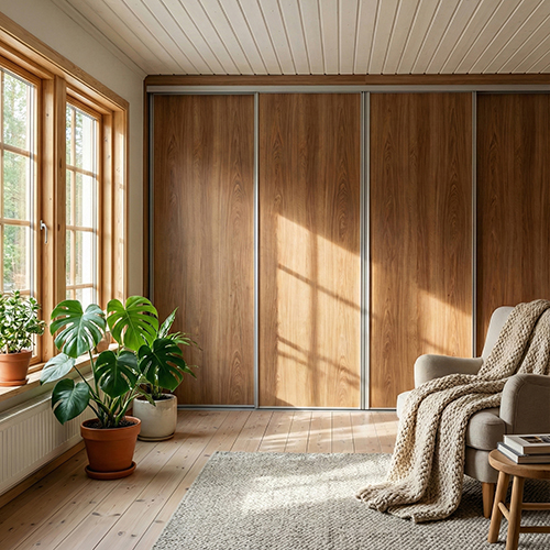 Denne typen skyvedører er bygd opp av en ramme av enten aluminum i forskjellige bredder og utforminger, MDF-fiberramme. Det er en skyvedør med fylling hvor du kan velge mellom utallige farger og materialer og det er mulighet for Soft-close og limte sprosser. Dører utmerker seg ved at fyllingen kan varieres i farge og kombinere ulike typer materialer, og dermed gjøre skyvedører til en aktiv del av rommets design.