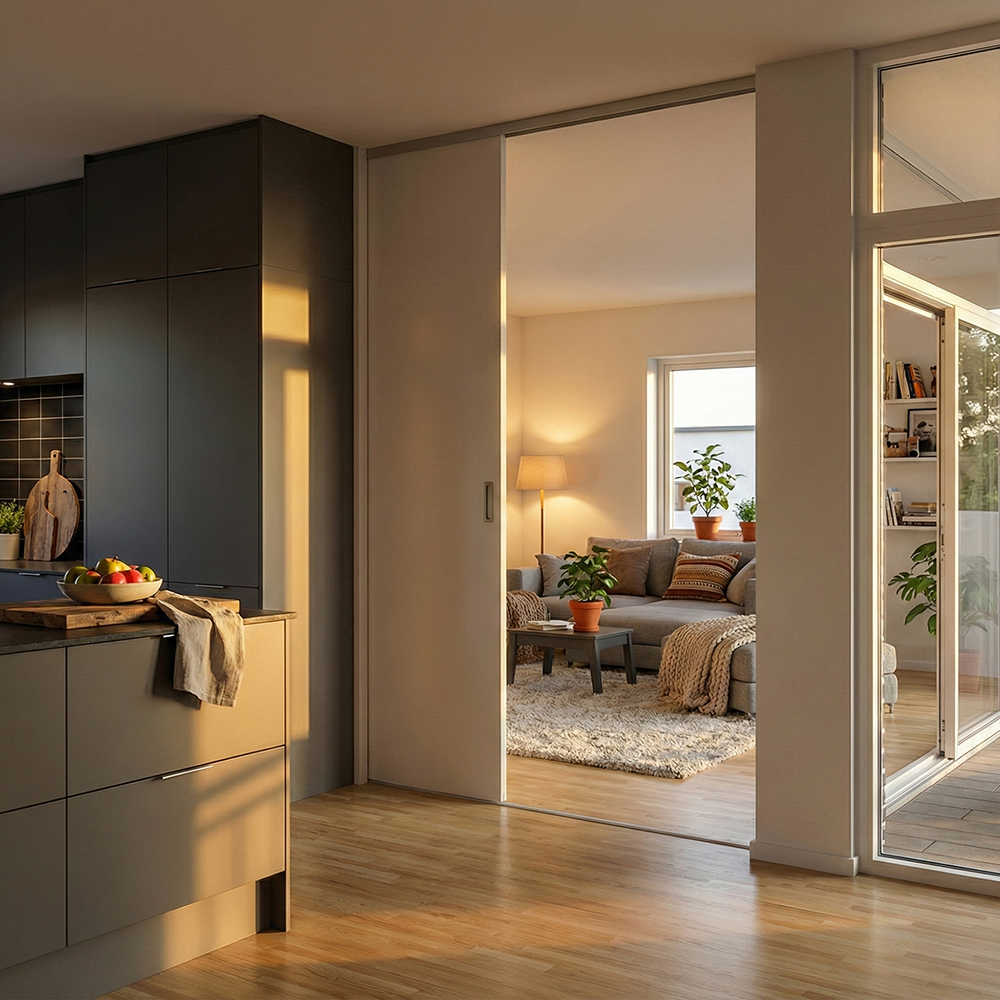 Elegant, glatt skyvedør fra gulv til tak