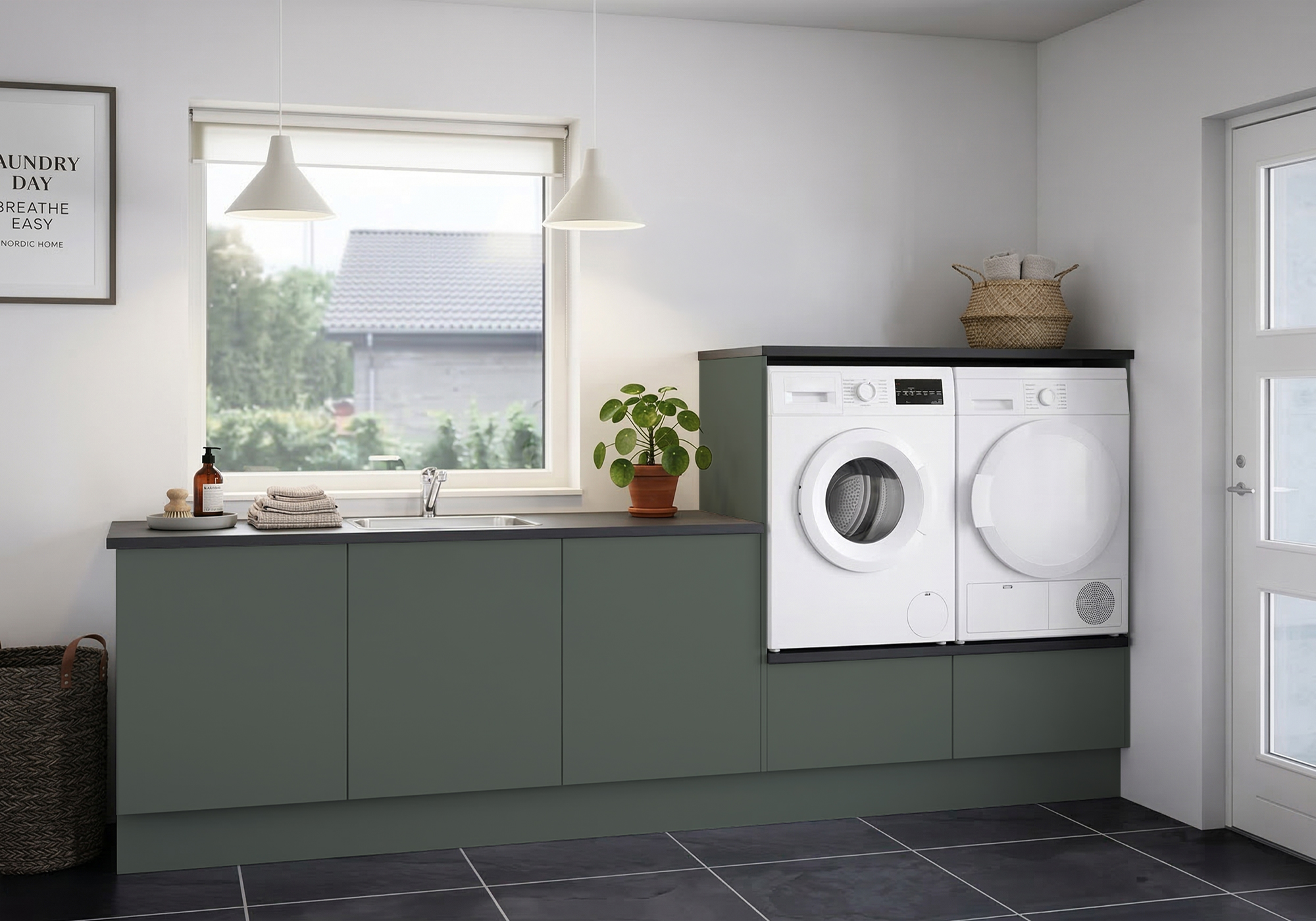 Multi-Living Bryggers sæt med Cibo Verde | Underskab m. skuffe, Vaskeskab, Gavle, Sokkelsæt - Bryggers sæt 23