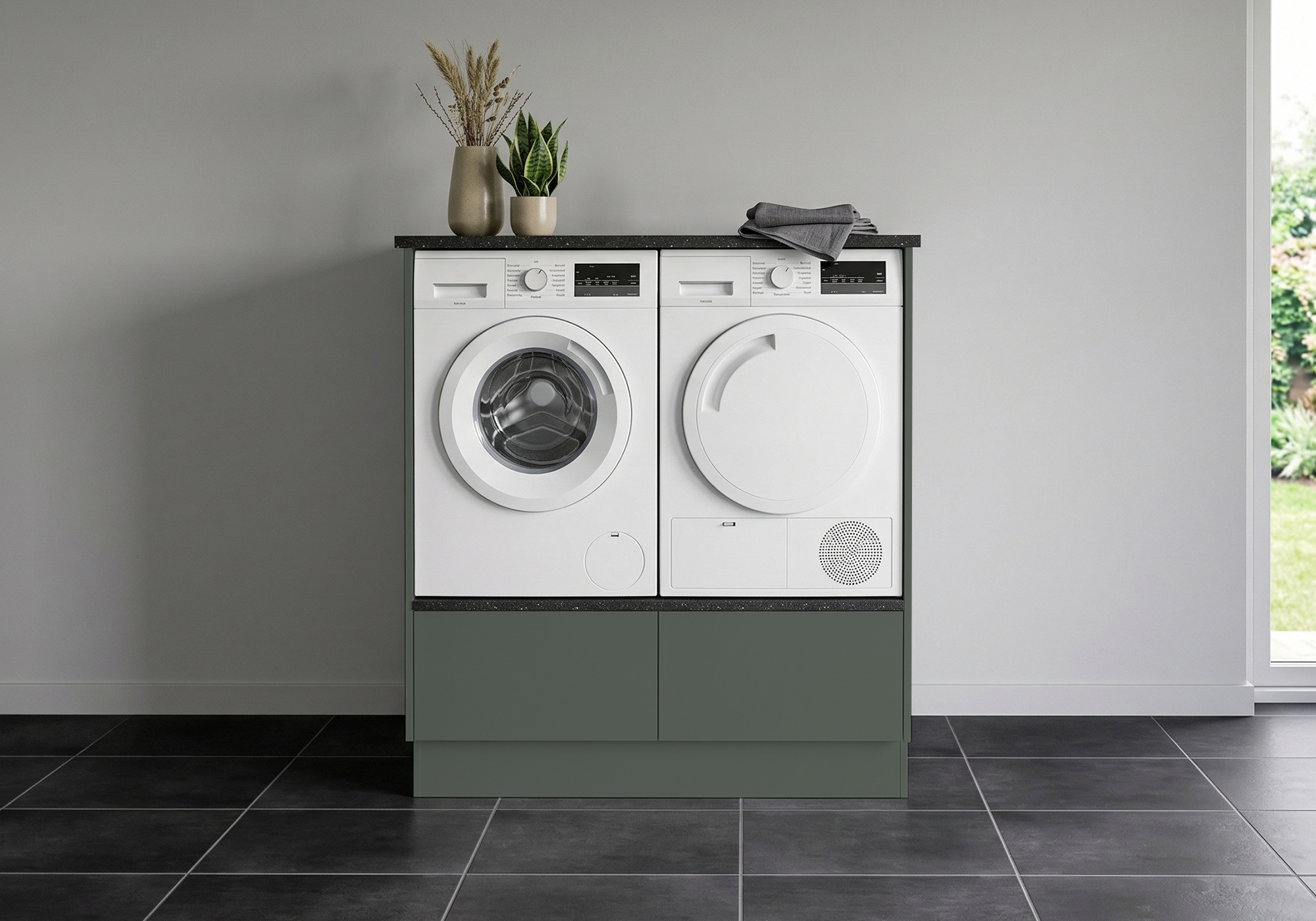 Multi-Living Bryggers sæt med Cibo Verde | Underskab m. skuffe, Vaskeskab, Gavle, Sokkelsæt - Bryggers sæt 1